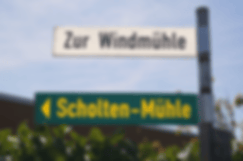bis zum Kreisverkehr. Links auf der Landstraße 7 (ehemals B 8) Richtung Wesel und geradeaus über zwei Ampelkreuzungen. An der nächsten Kreuzung links in den Groiner Kirchweg („Klinik Horizont“). Am Ende der Sackgasse rechts in die Straße „Zur Windmühle“